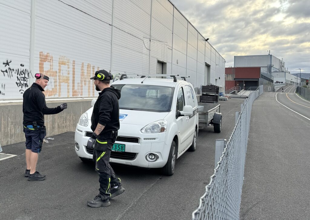 Bygget består av både lager og kontor og det er gode parkeringsforhold på eiendommen.