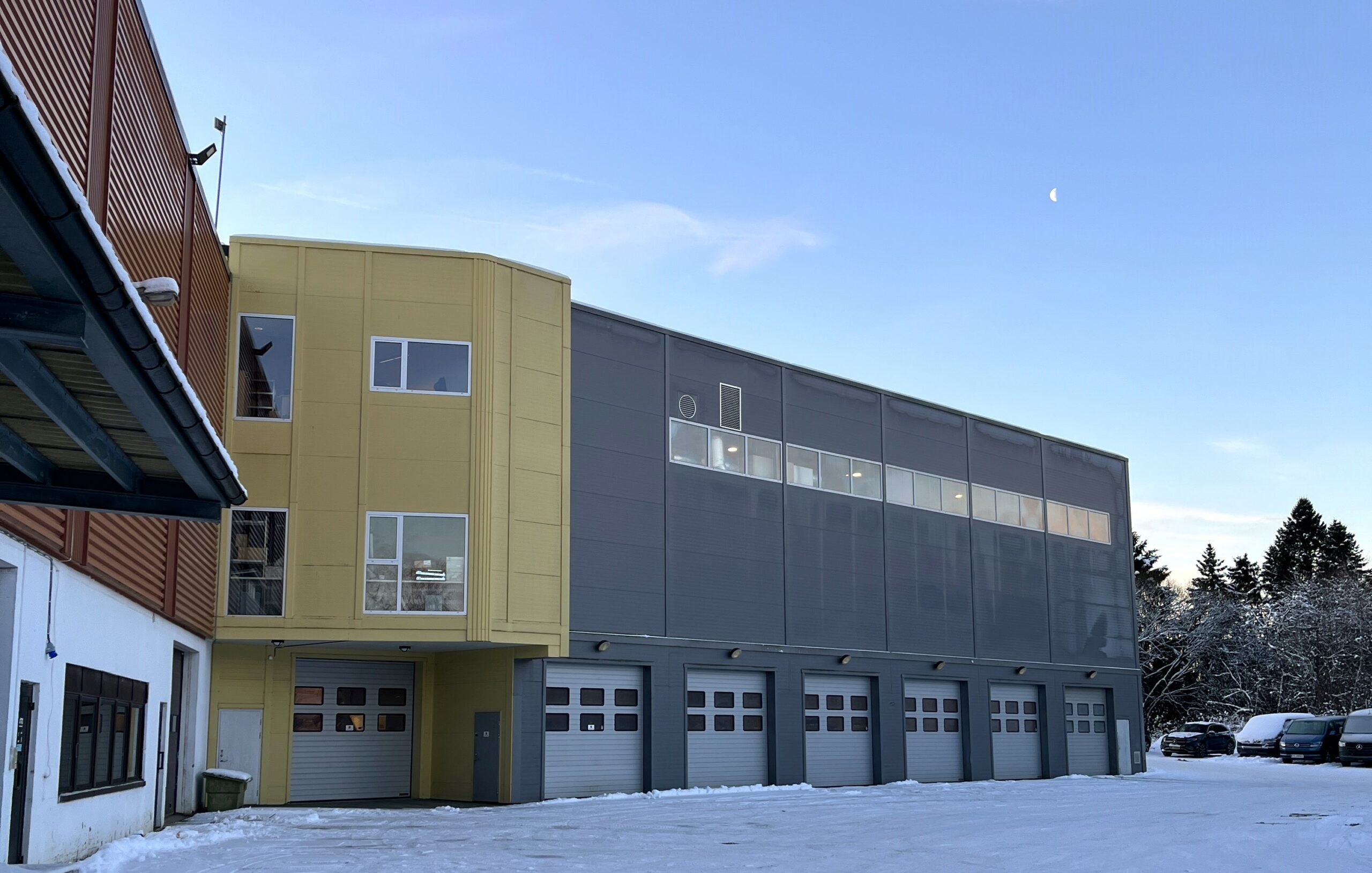 Kombinasjonsbygg med kontorer, undervisningslokaler, lager, verksted og garasje.