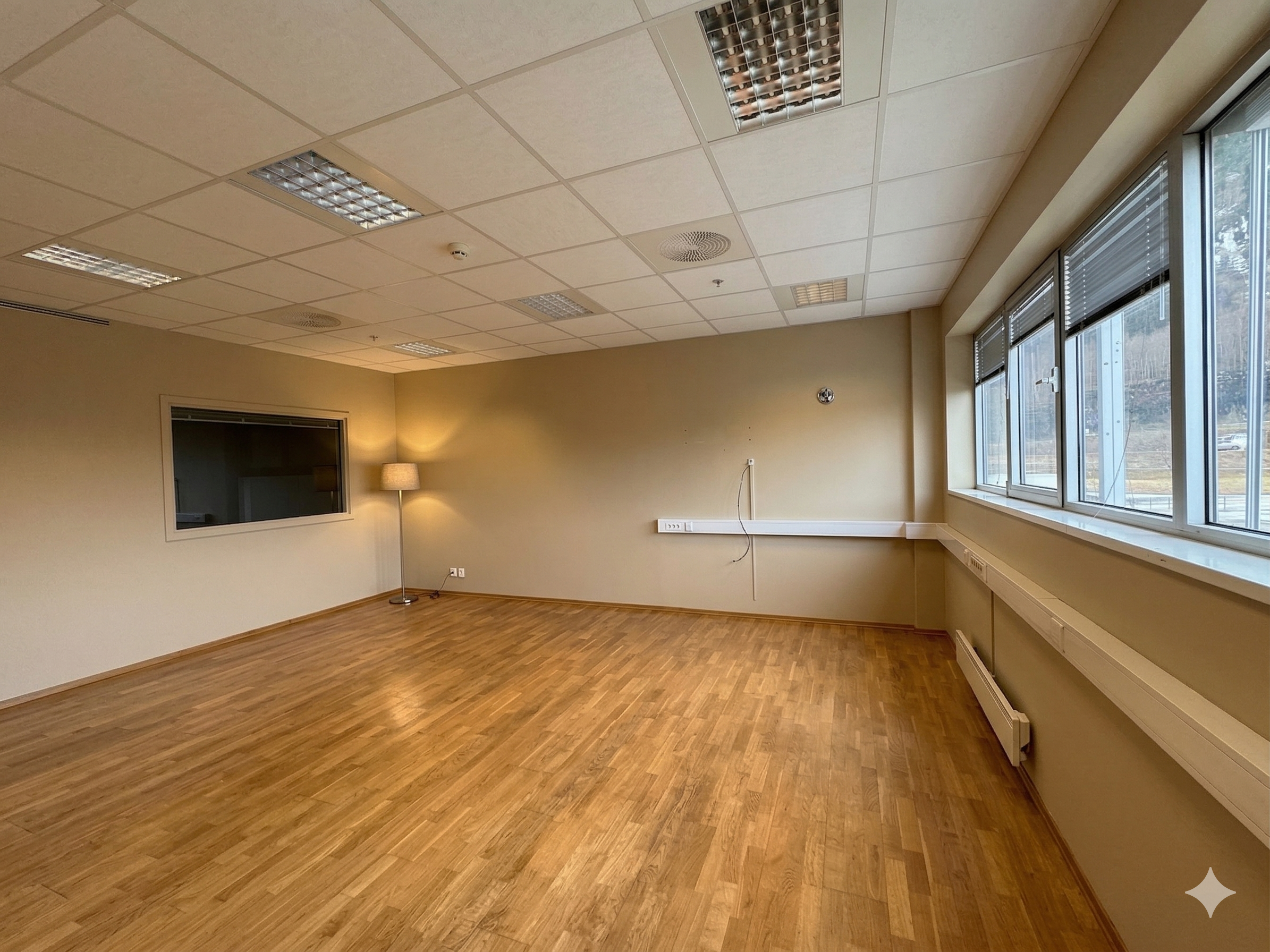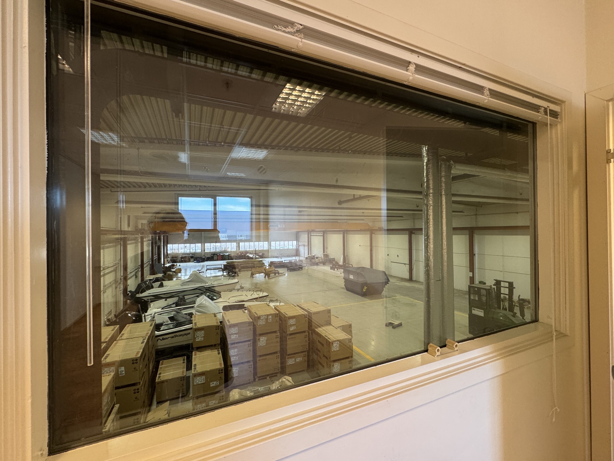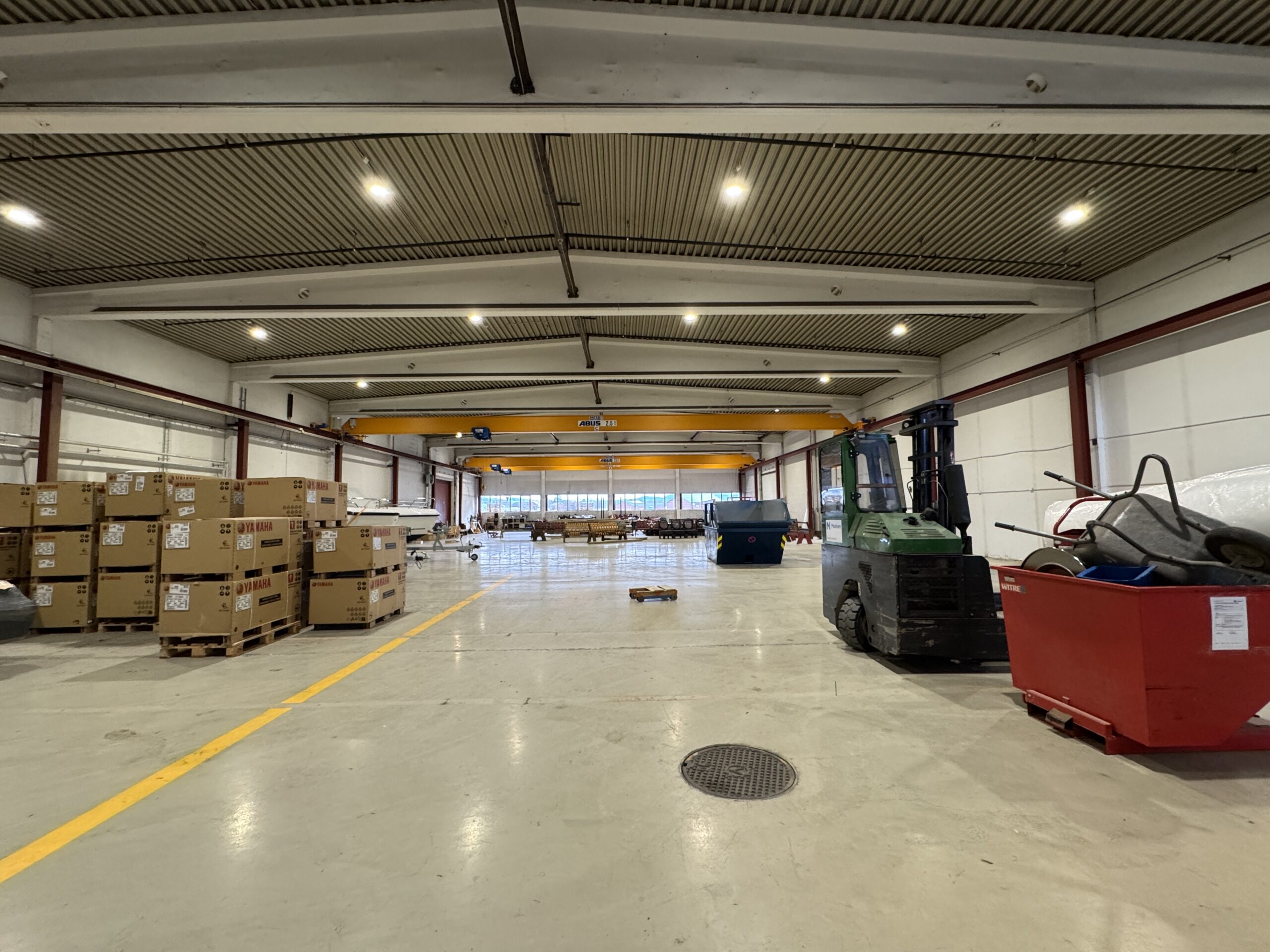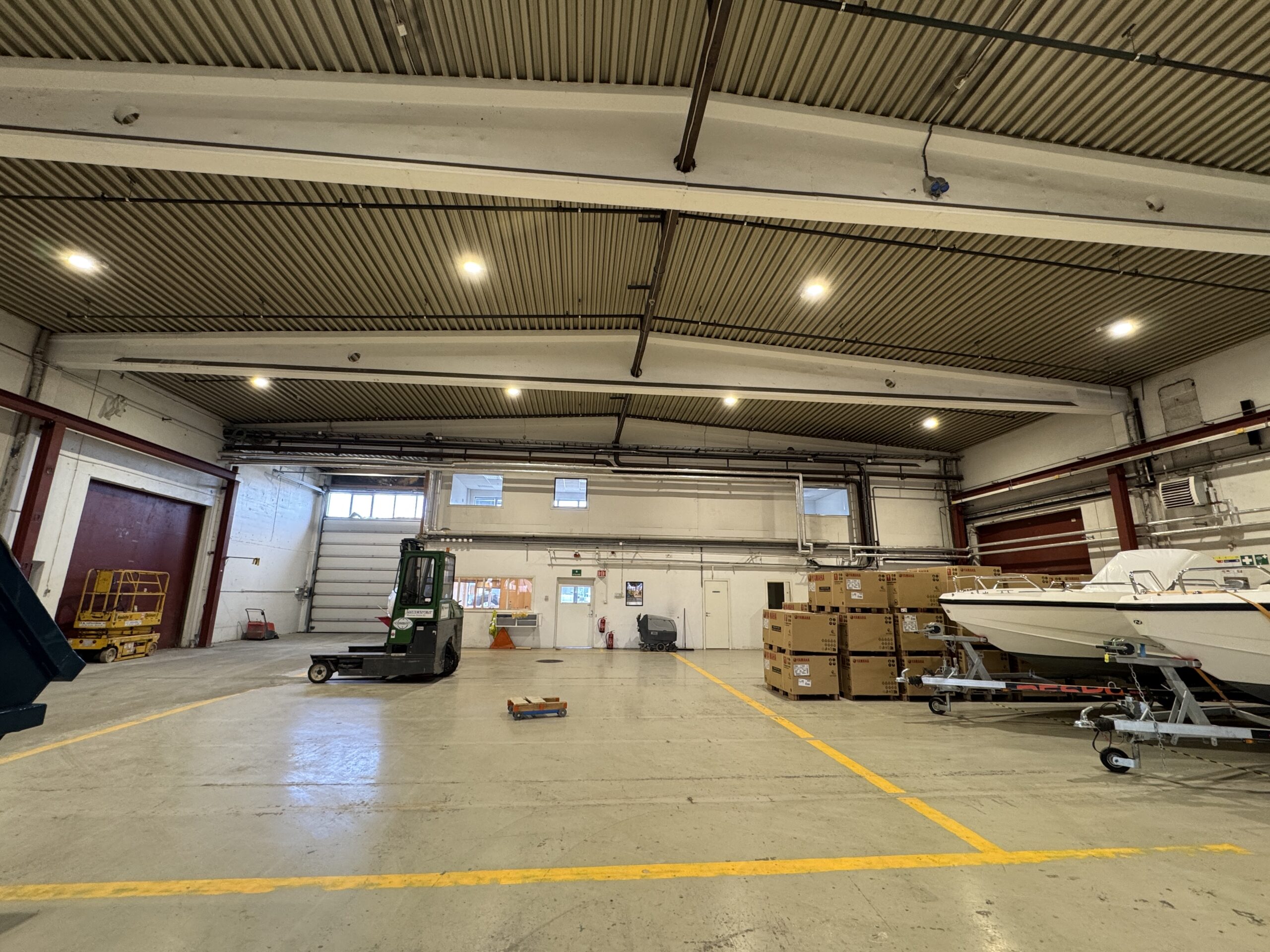 Lokalet består av en stor lagerhall med kjøreport og god takhøyde. 6 m under bjelkelag og 7-8 m utenfor. Garderobefasiliteter i 1. etasje og kontorer og pauserom i mesaninetasje.